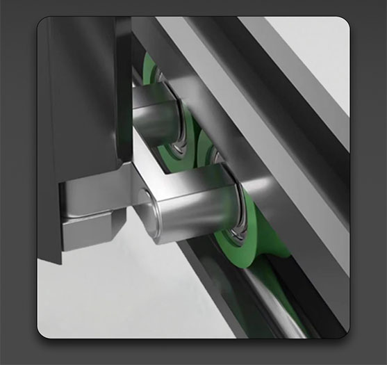 6.上配導(dǎo)向輪,底部U型滑軌與導(dǎo)軌配合無縫隙,推拉順暢不脫軌